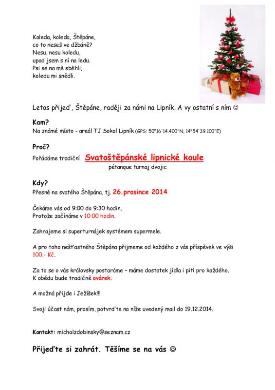 Kdo má zájem zvednout se o svátcích z gauče a přijmout pozvání na tuto již tradiční akci, prosím potvrďte zde svou účast. Počet pak lipnickým v termínu nahlásím.